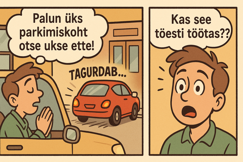 Ja just siis, täiesti ootamatult, keegi sõidab eest ära. Inimene jääb hetkeks mõtlema. “Vaat kus lugu… kas tõesti töötabki?